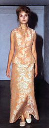 by the co-operation with a young and emergent stylist Guglielmo Capone. Providing G. Capone spring/summer 2001 collection with furnishing fabrics, our company is testing new experinces emphasizing the concurrence and distance between two different worlds. According to this outlook, fashion and furnishing fabrics represent the meeting point of a relation between cultures, events and people focusing on the play of contamination, giving rise to unusual matching which is the source of ritual and symbolical changes in our daily life.